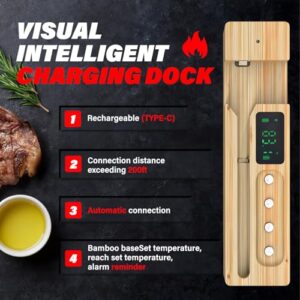 The sleek base not only charges your thermometer but also features a clear temperature display. This ensures that you always have accurate readings at a glance, whether you’re checking the oven or keeping an eye on the grill.