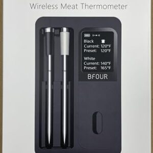Say goodbye to the hassle of being tethered to your grill or oven. With the BFOUR Wireless Meat Thermometer, you can monitor your cooking from up to 300 feet away using Bluetooth connectivity. Whether you’re entertaining guests or multitasking in the kitchen, this thermometer ensures you never miss a beat.