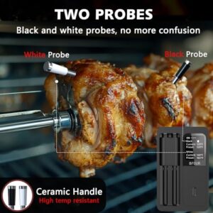 The BFOUR thermometer comes with two high-quality waterproof probes, allowing you to track two different meats or two different areas of the same cut simultaneously. This feature is perfect for cooking multiple dishes at once or ensuring precise temperature control across various sections of a large roast.