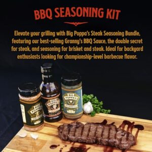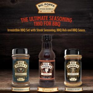 Get ready to elevate your BBQ game with Big Poppa’s Steak Bundle – the ultimate tasty BBQ set designed for true BBQ enthusiasts. Whether you’re grilling steaks, ribs, or brisket, this flavorful trio of steak seasoning, BBQ rub, and BBQ sauce has everything you need to create mouthwatering dishes that will impress family and friends alike.