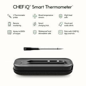 Elevate your culinary game with the CHEF iQ Dual Probe Cooking Bundle, featuring the Smart Wireless Meat Thermometer with an Ultra-Thin Probe #1 and an Add-On Probe #2. Whether you’re grilling, roasting, or smoking, this thermometer ensures precision and convenience, allowing you to monitor two different foods simultaneously with unlimited range Bluetooth connectivity.