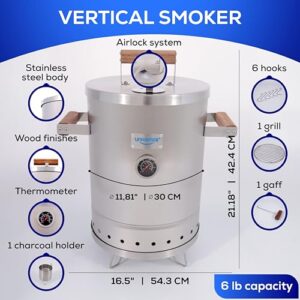 Crafted from high-quality stainless steel, this smoker ensures durability and longevity. Its robust build withstands high temperatures and resists rust, making it a reliable addition to your outdoor cooking setup.