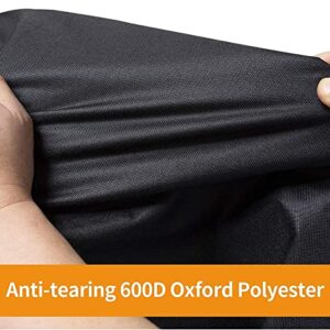 The durability of this grill cover is immediately noticeable. Made from 600D polyester material with a reinforced PVC backing, it offers reliable protection against sun damage, rain, dust, wind, and other weather-related issues. This material is not only strong but also thick, adding an extra layer of security for your grill.