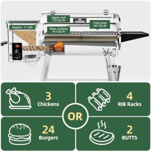 The DAMNISS Pellet Smoker Grill Combo boasts a generous 565 square inches of cooking space, allowing you to prepare large batches of your favorite meats and vegetables simultaneously. Whether you’re hosting a family barbecue or a weekend get-together with friends, this grill ensures you have ample space to cook everything to perfection without the hassle of multiple cooking sessions.