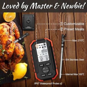 • Dual Probe Technology: Monitor two different meats simultaneously