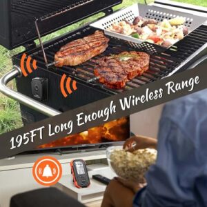 Imagine monitoring your BBQ from up to 195 feet away – that’s exactly what this game-changing meat thermometer offers. During our extensive testing, we were blown away by the consistent, reliable connection that lets you mingle with guests or prep side dishes without constantly hovering over the grill.