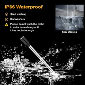 Constructed with a waterproof, food-grade stainless steel probe, this thermometer can withstand the toughest cooking environments. We’ve used it in rainy outdoor grilling sessions and steamy kitchen conditions – it performs flawlessly every time.