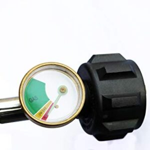 One of the standout features is the built-in propane tank gauge that helps detect dangerous leaks, ensuring your safety. The hose is 6 feet long, which provides ample length to conveniently position your larger propane tank away from your cooking or heating area. The Acme Nut (QCC1/Type1) x 1”-20 Male Throwaway Cylinder Thread ensures a secure fit, making the setup straightforward and user-friendly.