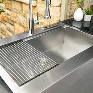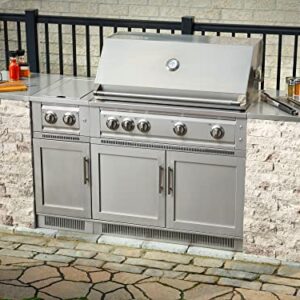 This outdoor kitchen set includes everything you need to create a fully functional cooking area that’s both modern and efficient. The 40" Grill Cabinet and Platinum 40" Grill deliver a powerful cooking experience, perfect for hosting large gatherings. The Platinum Dual Side Burner adds versatility, allowing you to prepare side dishes while grilling the main course. With a Farmhouse Sink Cabinet and a Chrome Commercial Pull Down Double Action Spray Faucet, cleaning up is a breeze. Storage is ample, featuring a combination of 1-Door and 3-Drawer Cabinets, all with easy-grab stainless steel handles and magnetic sealing gaskets to protect your stored items from the weather.