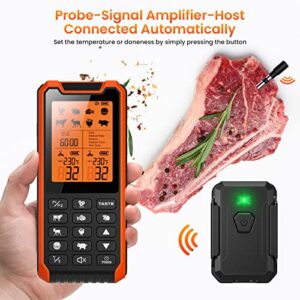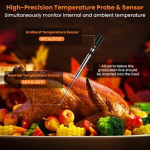 - Wireless Monitoring: Enjoy the convenience of wireless temperature monitoring up to 300 feet away, allowing you to relax while your meat cooks to the perfect temperature.