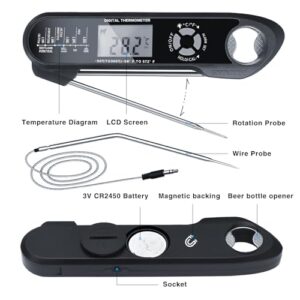 Elevate your cooking game with the MAGODEY Wire Digital Meat Thermometer, an indispensable tool for both amateur chefs and seasoned grill masters. Whether you’re searing steaks on the grill, roasting a turkey in the oven, or preparing a succulent rotisserie, this instant-read thermometer ensures your meats are cooked to perfection every time.