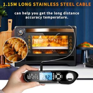 MAGODEY Instant Read Meat Thermometer – Long Wire, Alarm, Backlit, High-Temp