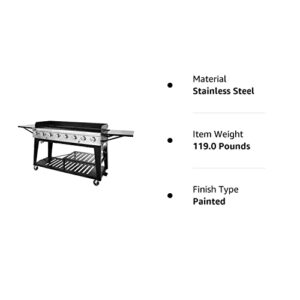 This grill boasts an impressive 969 sq. in. porcelain-enameled steel wire cooking grates, which are treated with a food-grade coating to ensure safety and quality. With eight stainless steel tube burners delivering 13,000 BTU each, the total cooking power reaches a remarkable 104,000 BTU, allowing you to cook a vast amount of food with precision and speed. Whether you’re preparing for a family barbecue or a large outdoor party, the spacious cooking surface ensures you have ample space for all your grilling needs.
