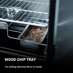 The electric design means no more wrestling with charcoal or propane. Simply plug in, set your temperature, and let the smoker work its magic. The front-loading wood chip tray makes it easy to add wood chips without opening the main chamber, maintaining consistent internal temperatures.