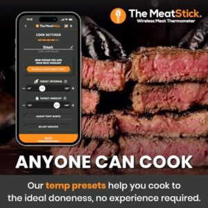 Pairing effortlessly with the MeatStick mobile app, this smart thermometer offers real-time alerts, customizable temperature alerts, and detailed cooking statistics. The intuitive interface makes it easy to set up and monitor your cooking from your smartphone or tablet. Additionally, the Bluetooth functionality provides a reliable backup connection, ensuring you never miss a critical temperature reading.