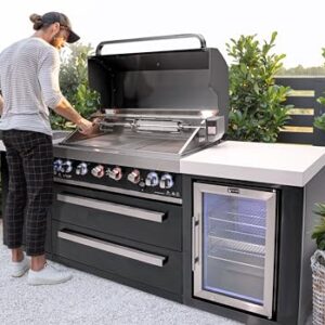 One of the standout features of this grill is the integrated fridge cabinet, providing easy access to your beverages and ingredients without leaving the cooking area. This thoughtful addition enhances the overall functionality, making it perfect for hosting outdoor gatherings and ensuring you have everything you need at your fingertips.