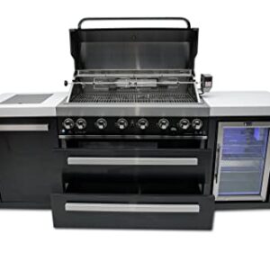 The Mont Alpi MAi805-BSSFC boasts a modular design, allowing you to customize your setup according to your preferences. Included features such as a fridge cabinet, side burner, granite countertops, rotisserie, chopping board, and grill cover add versatility and convenience to your grilling station.