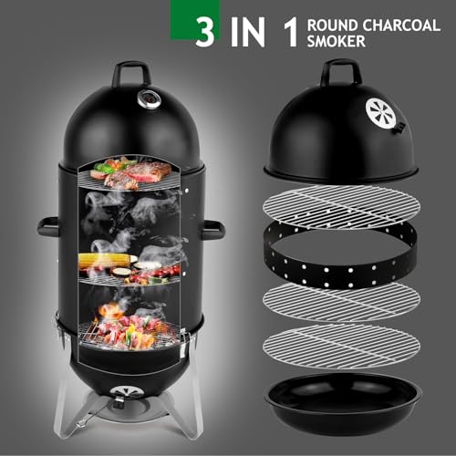 Portable Charcoal Smoker Grill – Outdoor BBQ Camping Cooking Grate Round