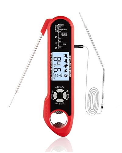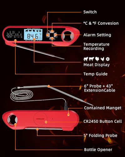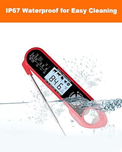 The backlit LCD display is a game-changer for outdoor grilling or low-light kitchen environments. No more squinting or using additional lighting – the bright screen provides clear readings instantly. The folding probe design makes storage incredibly compact, fitting easily in kitchen drawers or grill tool kits.