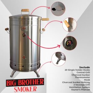 Crafted from premium stainless steel, the QUE ASADOR Smoker is built to last. At a robust 50 lbs, this vertical smoker represents the perfect balance between durability and portability. The barrel-style design isn’t just aesthetically pleasing – it’s engineered for optimal heat distribution and smoking performance.