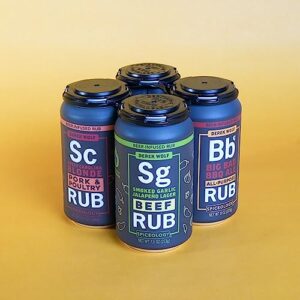 • Convenient Packaging: Comes in a set of 4 with resealable lids to keep your rubs fresh and easily accessible.