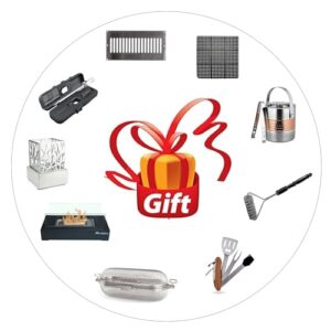 - Included accessories like wine cooler, rotisserie kit, and griddle plate