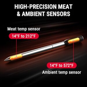 With two high-precision probes, you can monitor different types of meat simultaneously. This feature is perfect for cooking multiple dishes at once or ensuring different parts of a large roast are perfectly done.