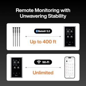 • Wireless Monitoring: Stay connected to your cooking with Bluetooth and Wi-Fi capabilities, providing seamless updates to your devices.