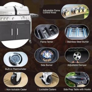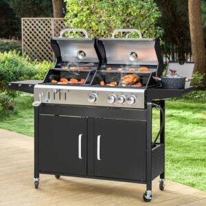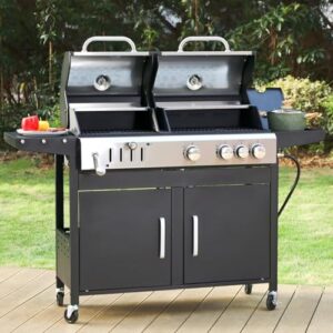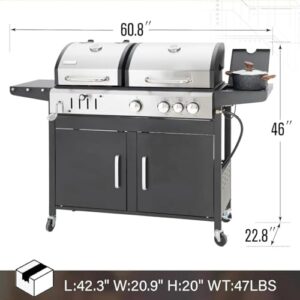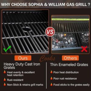 This grill is crafted with a solid build, showcasing heavy-duty cast iron grates that promise even heating and excellent heat retention. The rust-resistant, non-stick grates ensure that your food won’t adhere to the surface while retaining classic grill marks. The full assembled size of 60.8″L x 22.8″W x 46″H gives it a substantial presence without being overly bulky, making it perfect for your backyard or patio.