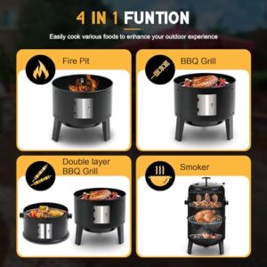 The standout feature of this charcoal smoker is its incredible versatility. With its multi-layered design, it can serve as a highly efficient smoker with the lid covered or morph into a traditional charcoal grill with one or two cooking grates. Moreover, it can be used as a standalone fire pit, providing warmth and a cozy ambiance to your gatherings.