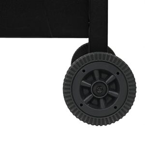 Mobilizing this grill is a breeze, thanks to the dual wheels. Whether rain threatens your cookout or the party moves from backyard to poolside, relocation is hassle-free. Dual side shelves provide ample space to hold spices, condiments, plates, and tongs, keeping everything within arm’s reach while you focus on grilling.