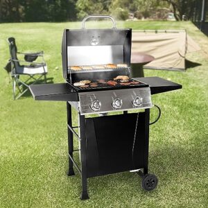 This grill boasts three stainless steel burners producing a total of 27,000 BTUs, providing a robust and even heat source for all your grilling needs. The 2 porcelain-coated steel cooking grates are not only durable but also ensure easy cleanup after each use. The generous cooking area can accommodate up to 33 burgers or 13 steaks simultaneously, making it perfect for large gatherings.