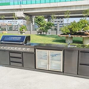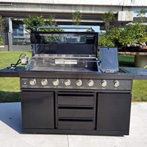 The Modular 3 Piece Island BBQ Kitchen represents a pinnacle in outdoor cooking setups, bringing together functionality, elegance, and high-end technology. Made from high-quality Black #201SS stainless steel, not only does it promise durability, but it also introduces a sleek element of style to your backyard. The 8 Zone BBQ Grill offers a generous total of 96,000 BTU from its array of burners, including six powerful stainless steel burners, a cast iron side burner, and a rear infrared burner for that perfect sear.