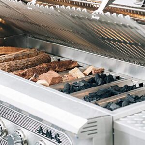 The American Muscle Grill stands out with its robust construction, sleek design, and, most importantly, its capability to use three different types of fuel—wood, charcoal, and propane gas. This 36-inch freestanding grill is built to last with its heavy-duty stainless steel body and offers ample cooking space for backyard barbecues or family gatherings.