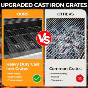 The stainless steel surface enhances the grill’s durability, and the enameled cast grilles resist cracking, ensuring long-lasting performance.