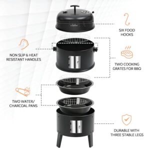 When it comes to outdoor cooking, having a versatile tool that can accommodate different methods is a game-changer. The BIG HORN OUTDOORS Charcoal Smoker Grill offers the convenience of a 3-in-1 functionality—serving as a smoker, grill, and fire pit. This makes it an ideal choice for those who enjoy experimenting with various cooking styles, whether it’s in your backyard, patio, or during a camping trip.