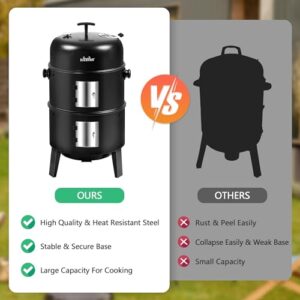 Constructed with a three-layer structure, the smoker can be assembled in just 10 minutes by following the instruction manual. The design also facilitates easy cleaning; you can remove the smoker lid and effortlessly clean the cooking grate whenever needed.
