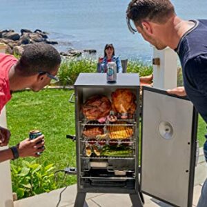 Equipped with three removable chrome plated steel racks, this electric smoker is versatile enough to handle even large cuts of meat. The shelves can be easily removed and are dishwasher safe, simplifying the cleaning process after your smoking session. This feature adds convenience and eliminates the dreaded post-cooking cleanup.