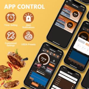 Seamlessly connect to your smartphone or tablet via Bluetooth. The easy-to-use app provides real-time temperature readings, customizable alerts, and precise control, allowing you to monitor your cooking progress from anywhere in your home.