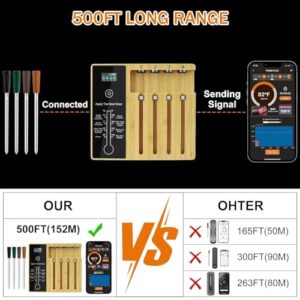 Enjoy the flexibility to move freely around your kitchen, backyard, or smokehouse without losing connection. The robust 500ft range ensures consistent communication between the probes and your smartphone.