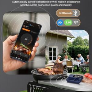 Imagine monitoring your BBQ from up to 328 feet away with crystal-clear 5G WiFi and Bluetooth connectivity. This isn’t just a thermometer – it’s your personal grilling assistant. The dual probe system allows you to simultaneously track two different foods or monitor both the meat’s internal temperature and the grill’s ambient temperature.