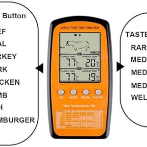 Wireless Dual Probe Meat Thermometer for BBQ Oven Grill & Kitchen Timer