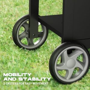 Unique Design: The grill comes with a lid that features a handle to keep heat and dust out. An embedded thermometer lets you monitor the internal temperature while cooking with the lid closed. Two stable casters at the bottom make the grill easy to move, perfect for outdoor BBQs.