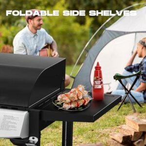 Ample Storage Space: The grill boasts a roomy storage area underneath for grilling tools, propane tanks, and seasonings. The two foldable side tables are exceptionally useful for placing cooked food or prepping ingredients and can be neatly folded away when not in use.